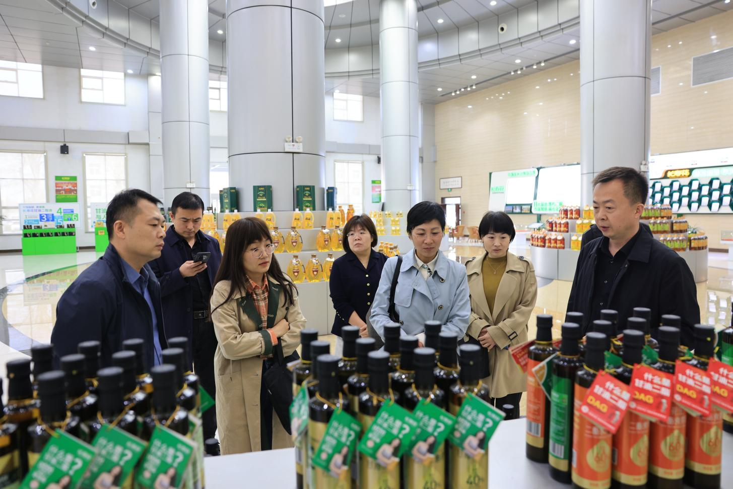 在长寿花食品绿色生产基地,调研领导实地参观了产品展厅和全自动灌装包装生产车间,并认真听取了企业生产经营现状、创新产品研发、消费市场拓展等情况介绍。