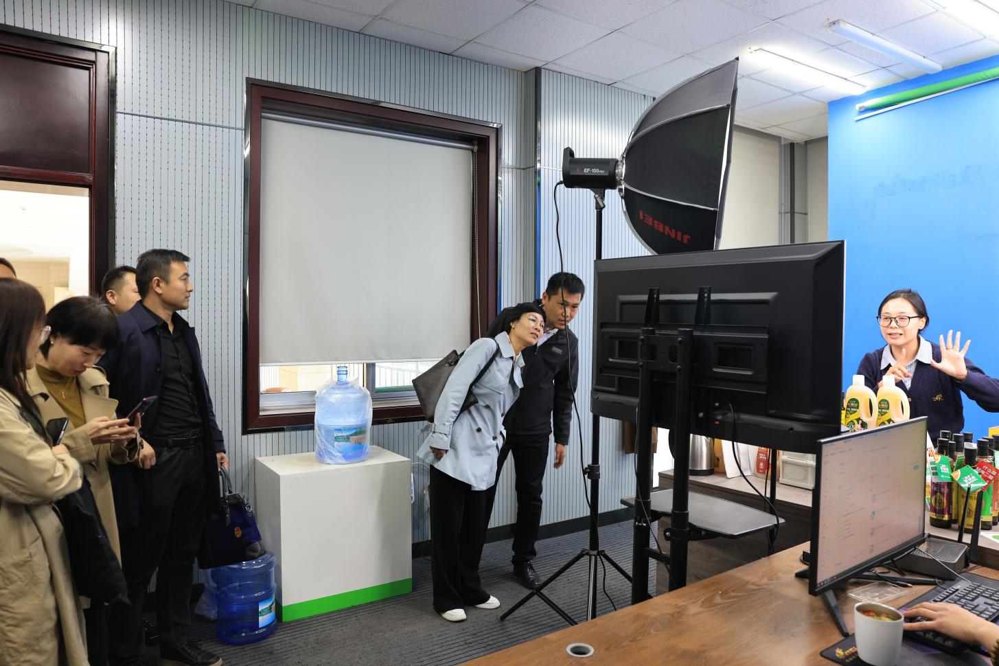 在长寿花食品电商直播基地,调研领导实地了解了直播运营模式、销售数据统计、主播培训等相关工作情况。
