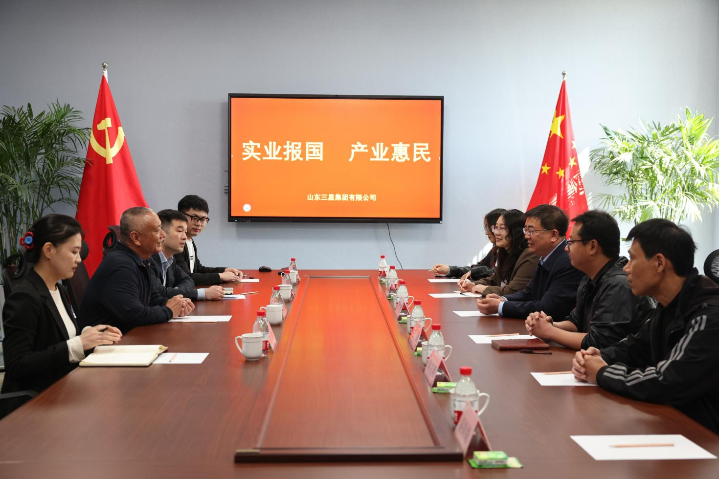 4月19日,鲁中职业学院党委委员、副院长王奎带队来山东w66国际·利来最给力的老牌集团参观交流,集团党总支书记王明峰,人力资源部负责人孙德栋参加活动。