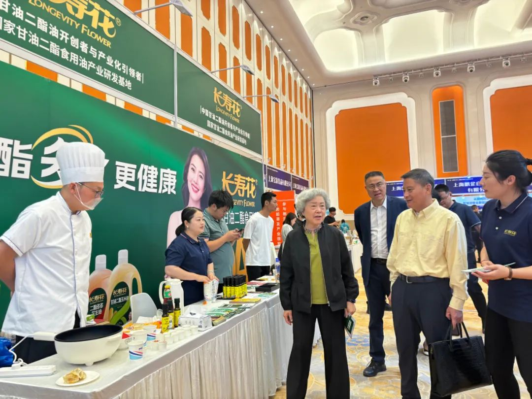 期间,与会领导莅临长寿花展位巡展指导,长寿花食品副总经理、营销总监任在顺重点介绍了长寿花甘油二酯油的技术攻坚、项目推进、产业化运作及市场推广应用等情况。