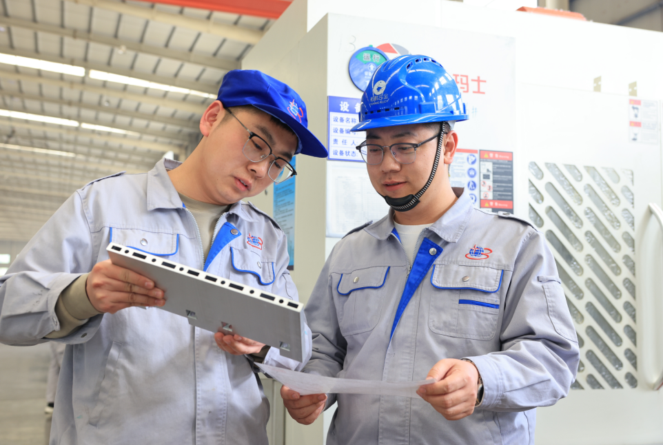 2017年那个未见初雪的12月,刚走出校园的卜建磊,握着机械工程专业毕业证书,带着对“世界铝加工看邹平”的憧憬,在裕航合金投下简历。入职首日的情景仍历历在目。挤压车间125MN挤压机轰鸣声震耳欲聋,500多度的铝棒在辊道上与空气中的水分碰撞释放出一缕热气。从测量产品厚度偏差开始,到产品生产异常记录,以及跟随师傅们连夜调整工艺,在这里,卜建磊第一次懂得精密制造的分量。