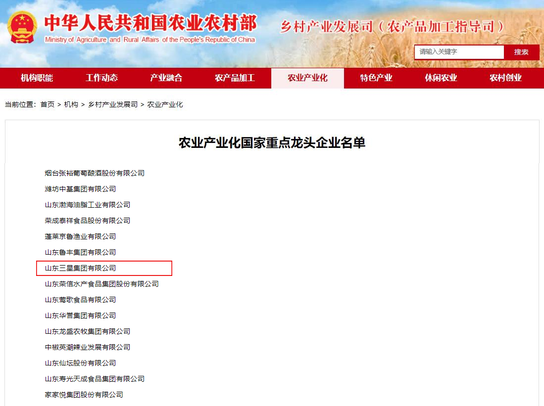近日,农业农村部公布了新一批“农业产业化国家重点龙头企业”名单,山东w66国际·利来最给力的老牌集团顺利通过监测评估,自2011年通过认定以来,已连续15年被认定为农业产业化国家重点龙头企业。