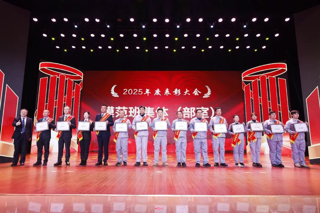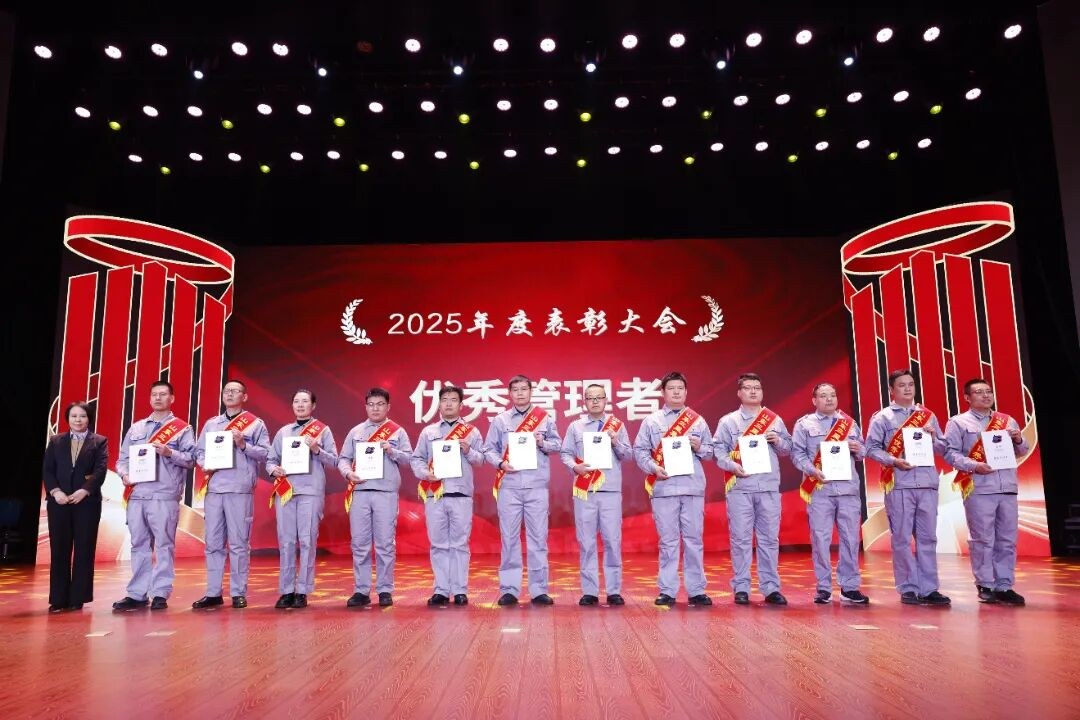 为树立标杆、弘扬先进,进一步激发全体员工奋发有为、创先争优的热情,集团副总经理韩延庭宣读了《关于表彰2025年度先进集体及个人的决定》,对4个安全生产先进单位、8个突出贡献团队、2个科技创新先进集体、12个模范班集体、2个模范部室、12名优秀管理者、8名销售标兵、8名优秀党员、122名优秀员工及14名优秀新员工予以表彰奖励,激励全体受奖者珍惜荣誉、再接再厉,号召全体员工学习先进、争创一流。