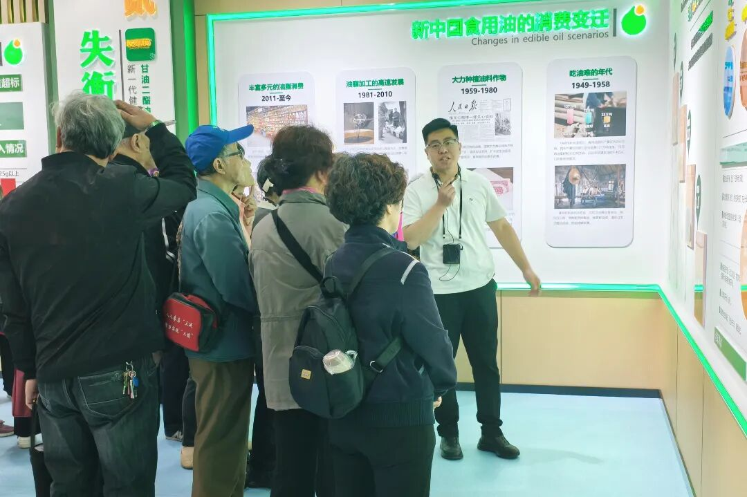 在甘油二酯油科普馆内,嘉宾代表们通过图文展示、实物陈列、科普讲解、互动体验等多种形式,系统学习了食用油的相关知识、甘油二酯油的研发背景、健康功效以及行业发展趋势。专业的讲解、生动的展示,让大家对甘油二酯油这一健康油品有了更深入、更全面的认知。大家驻足观看,主动问询,现场工作人员耐心解答,互动氛围十分热烈。